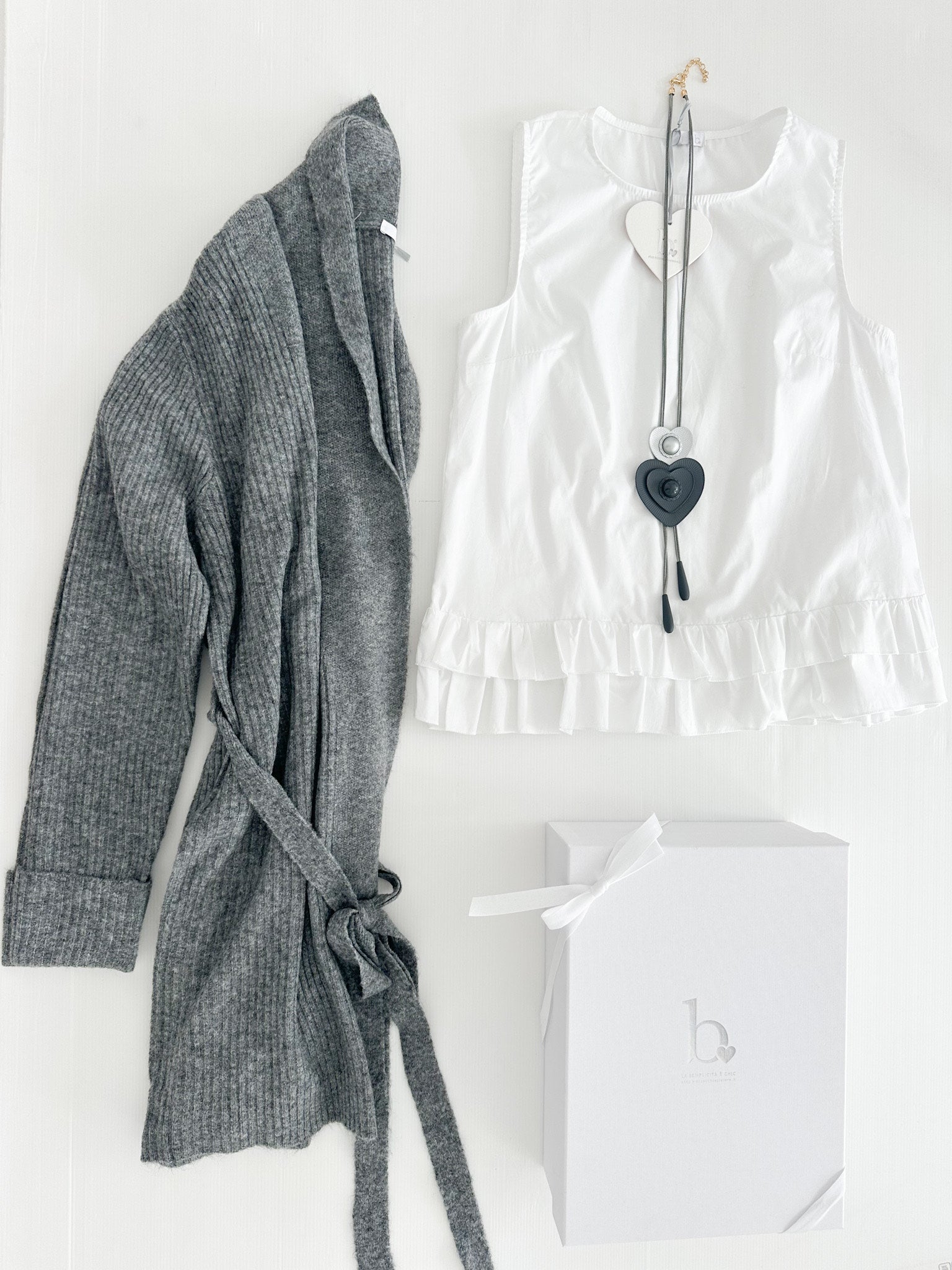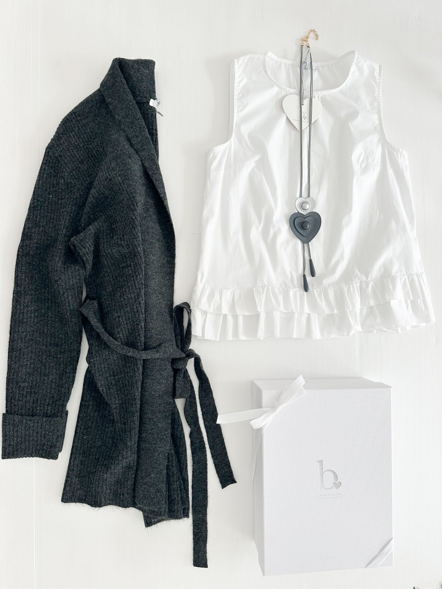 A completare questa BiancoBox una meravigliosa collana lunga con due maxi cuori con completano l'outfit! Un'accessorio che renderà il tuo look irresistibile!!