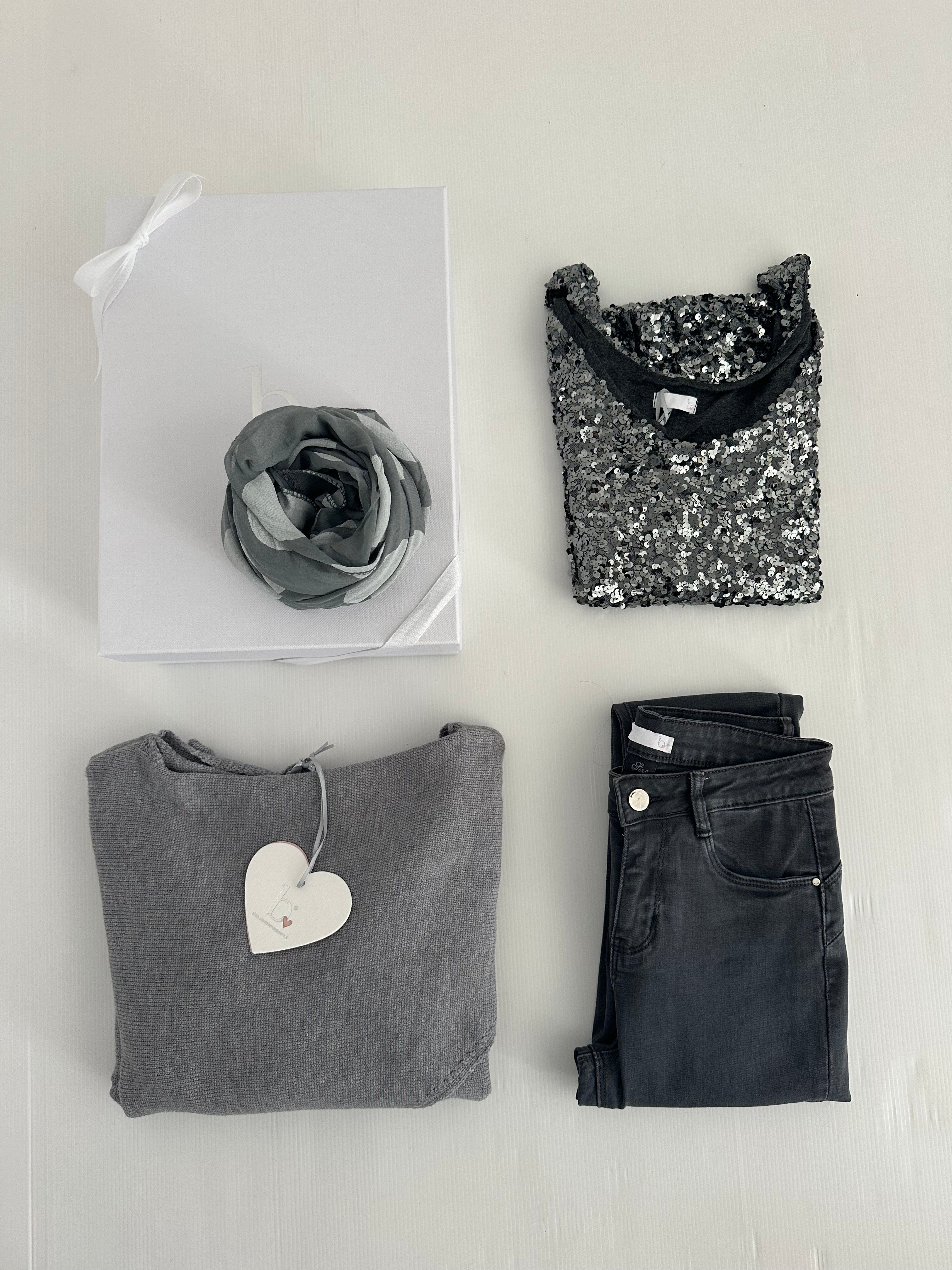 Il primo capo è un maglioncino in misto viscosa mordibissimo e coccoloso con il filato sovrapposto e la manica lunga a pipistrello, ideale per far intraveder ka seconda proposta di questa box.