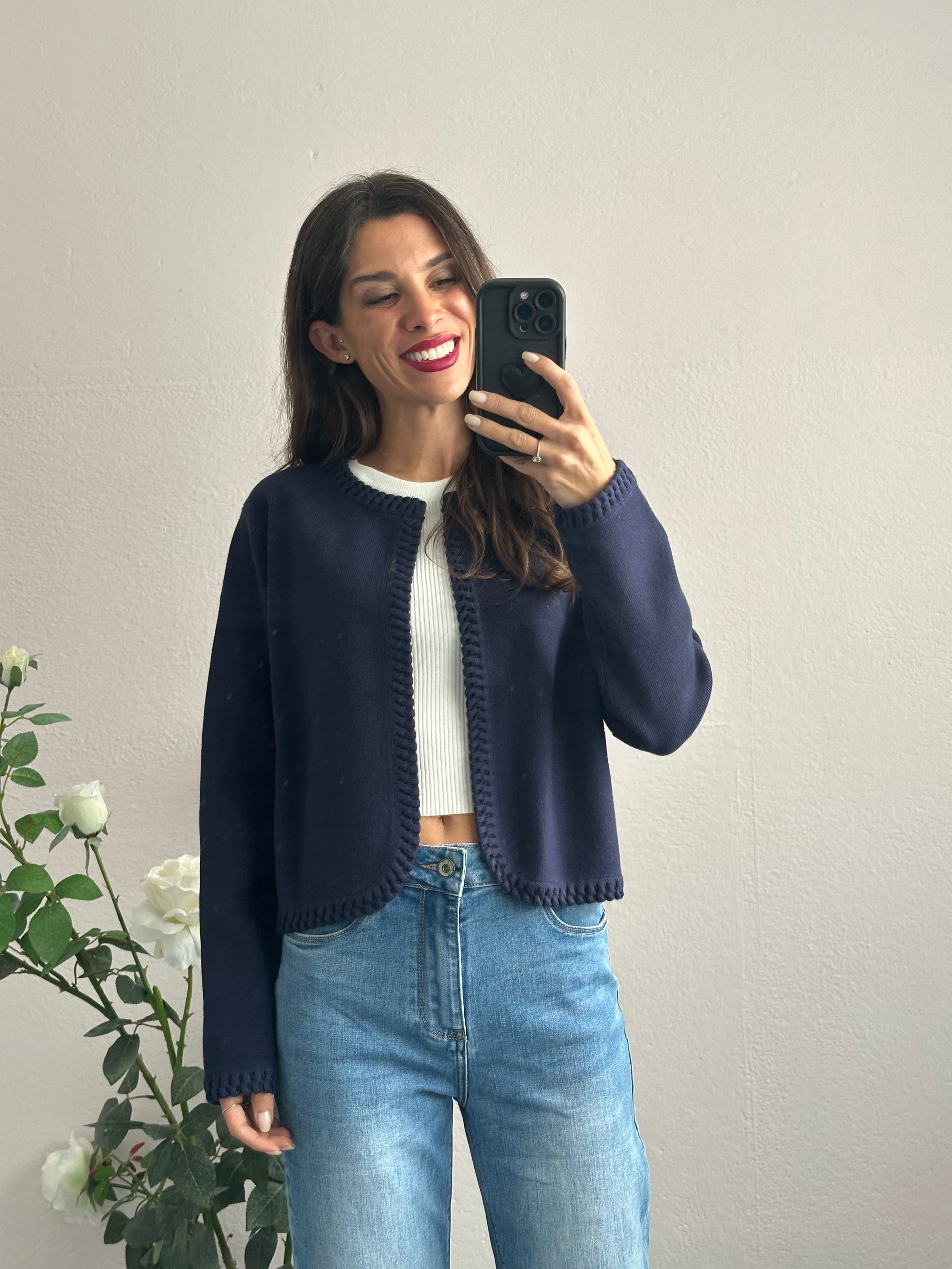 Questo cardigan in misto viscosa si distingue per le raffinate rifiniture intrecciate che aggiungono un tocco delicato di eleganza. Il bottoncino a scomparsa garantisce una chiusura discreta e raffinata, rendendolo ideale per completare con semplicità e stile ogni tuo outfit. Leggero e confortevole, è perfetto per le giornate in cui desideri sentirti avvolta nella morbidezza.