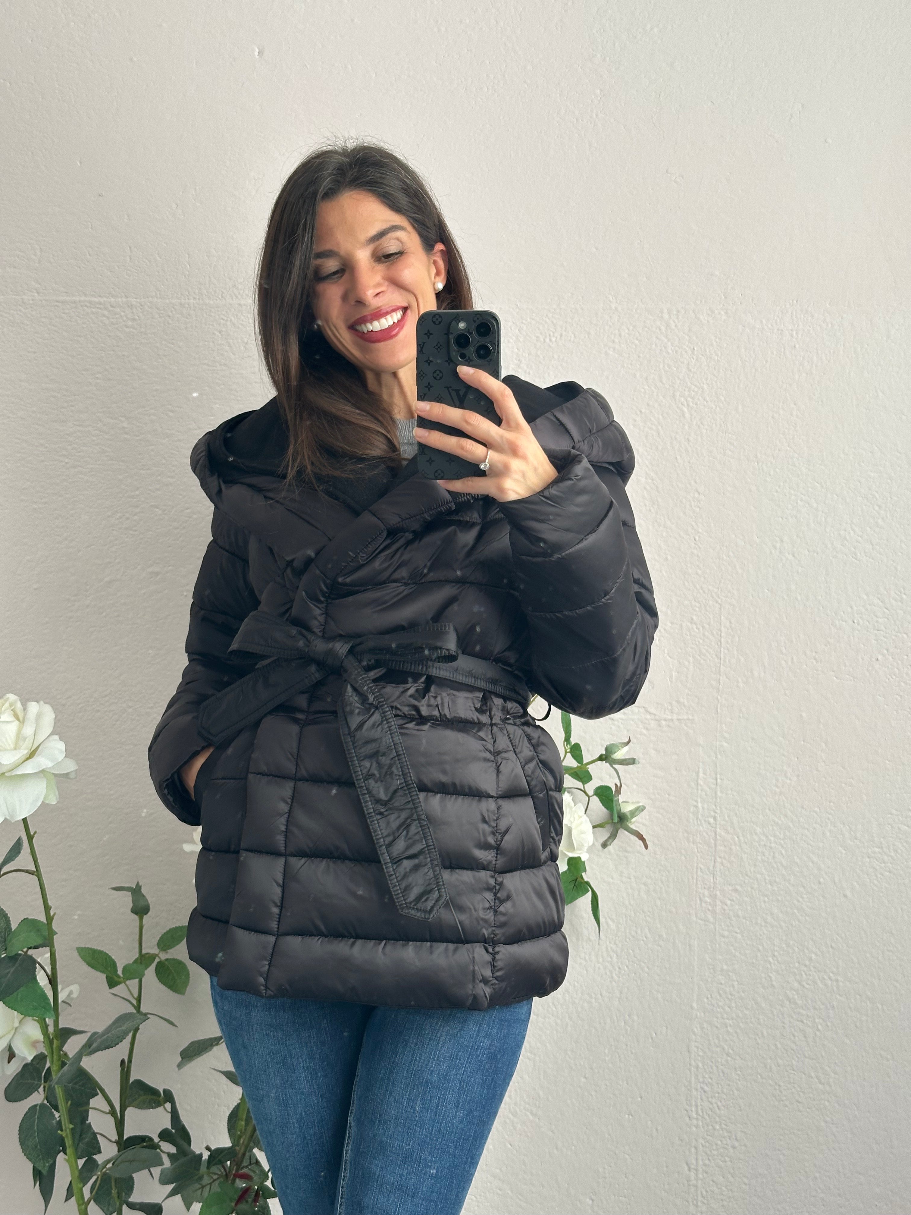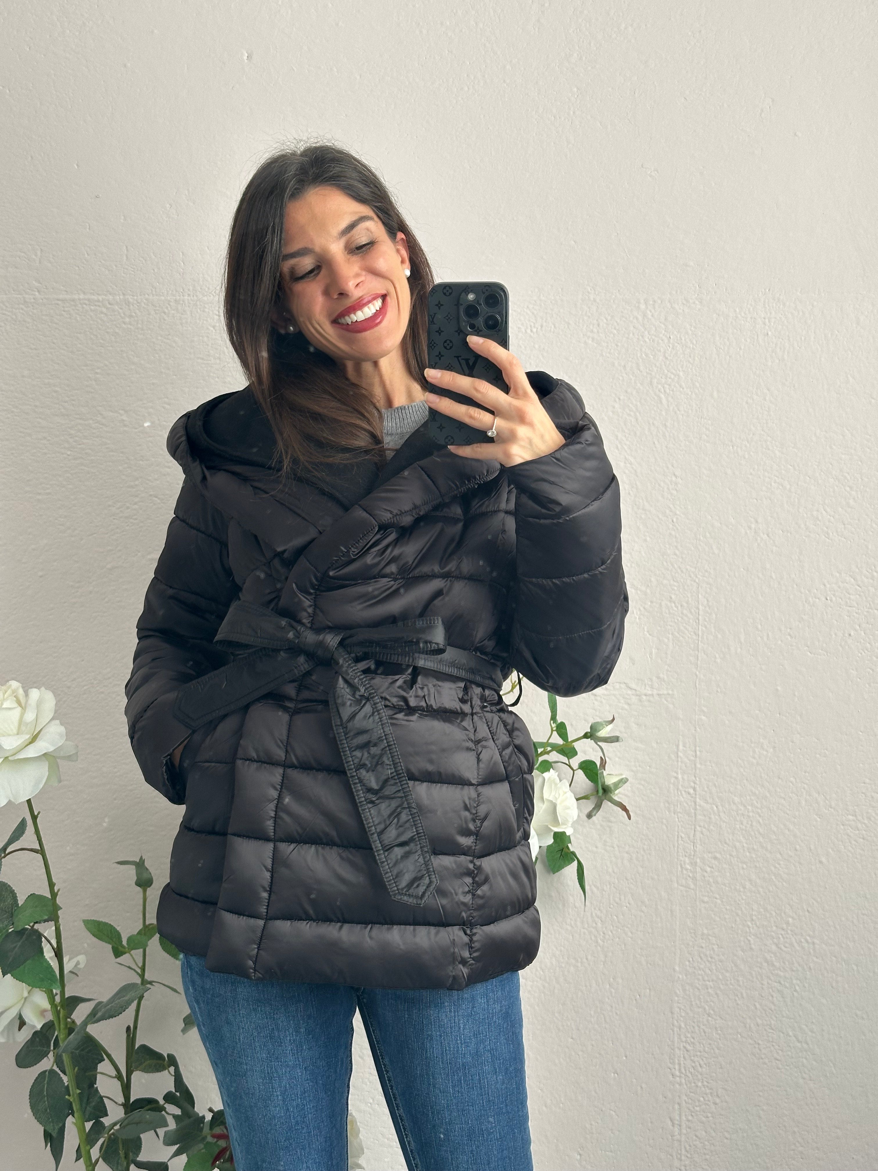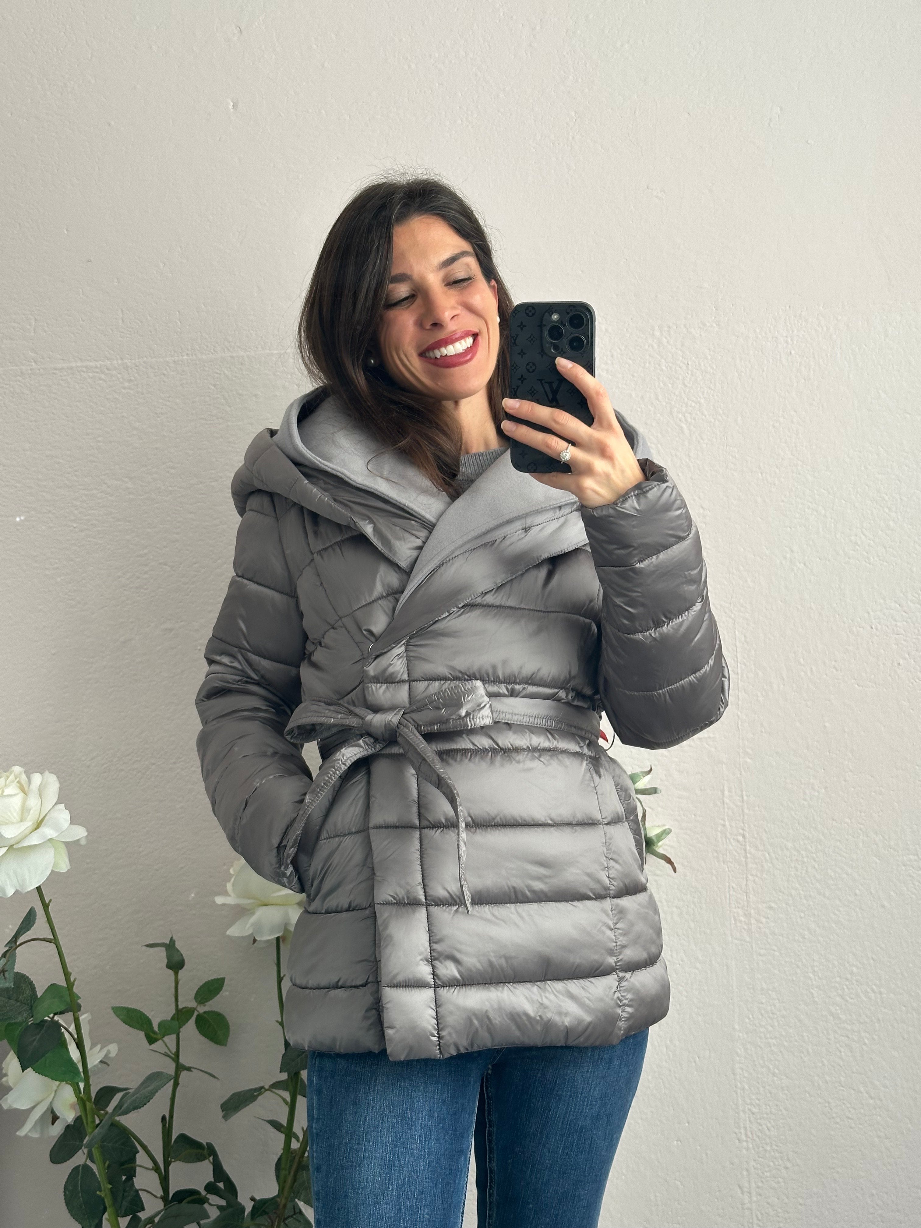 Giacca versatile con cappuccio, caratterizzata da bottoni funzionali e una cintura che si adatta a ogni occasione. La sua particolarità è che sembra di avere sotto un cappottino per il suo cappuccio in pannetto che spunta sopra quello della giacca, ma che con la cerniera interna si può rimuovere, trasformandola nella classica giacca a vero. Un capo pensato per chi ama la praticità senza rinunciare allo stile, perfetto per le transizioni stagionali e per chi desidera massima flessibilità nel proprio guardaroba.