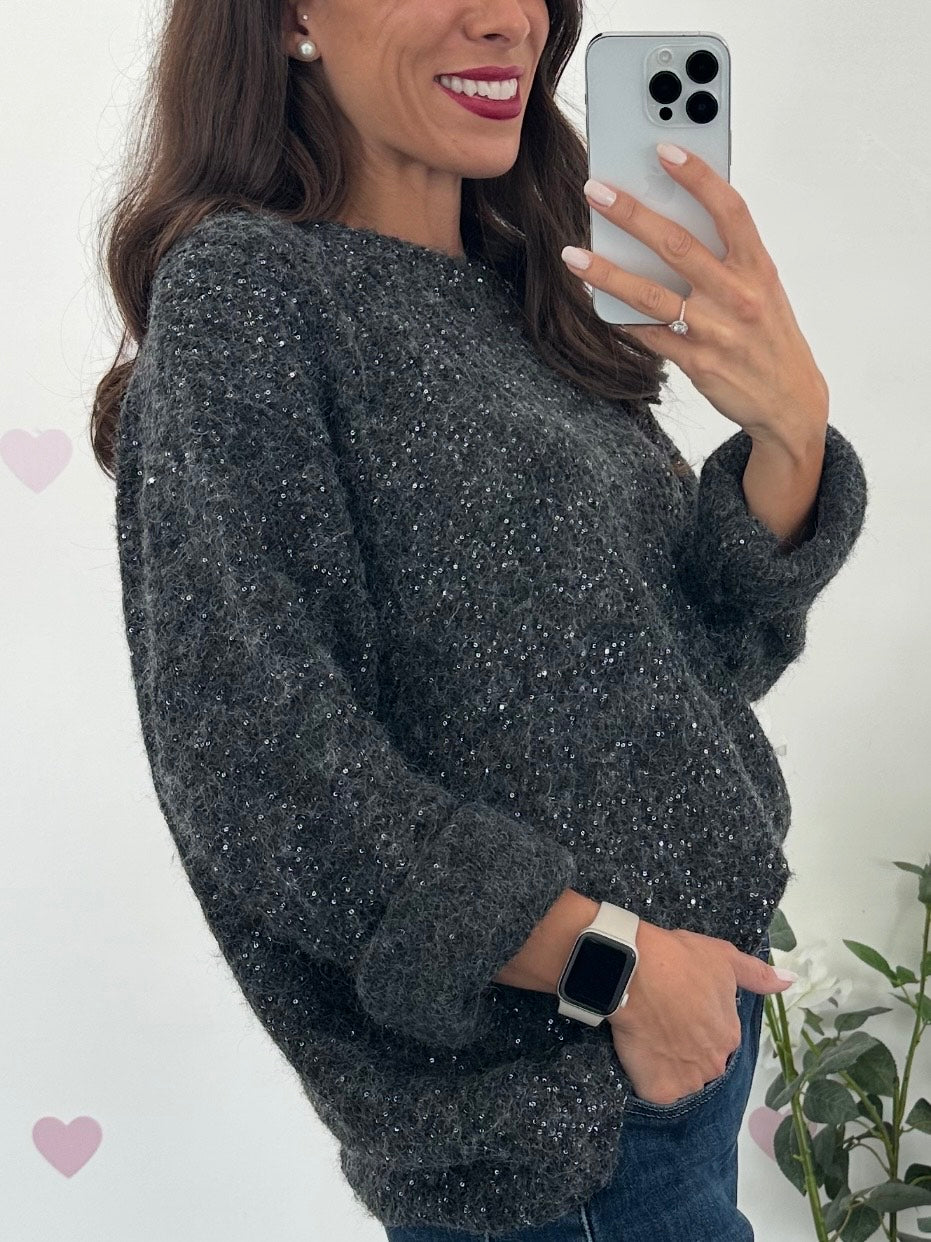Maglione misto lana con micro paillettes