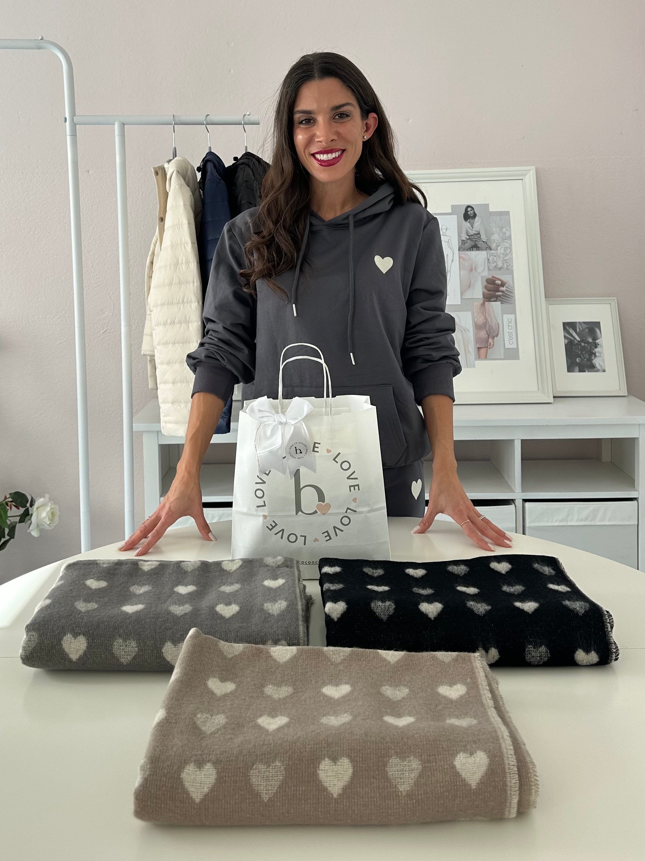 La sciapa è un capo davvero caldo e indispensabile in questa stagione, una morbida combinazione cuori e microlurex che avvolge delicatamente in un'abbraccio facendoti brillare!